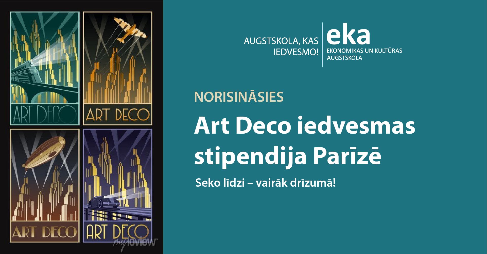 Ekonomikas un kultūras augstskolas fonds aicina studiju programmas “Interjera dizains” studentus pieteikties Art Deco iedvesmas stipendijai Parīzē.. Stipendijas mērķis ir dot iespēju radošam...