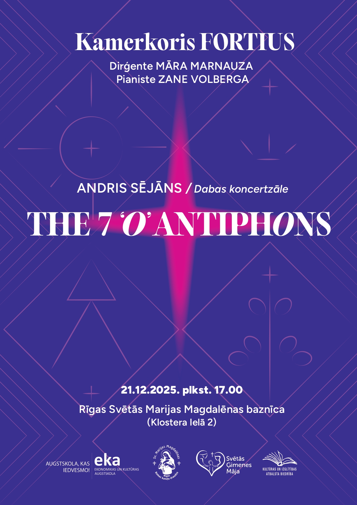 EKA augstskola aicina uz Kamerkora Fortius koncertu “The 7 ‘O’ Antiphons”, kas norisināsies 21. decembrī plkst. 17.00 Rīgas Sv. Marijas Magdalēnas baznīcā!